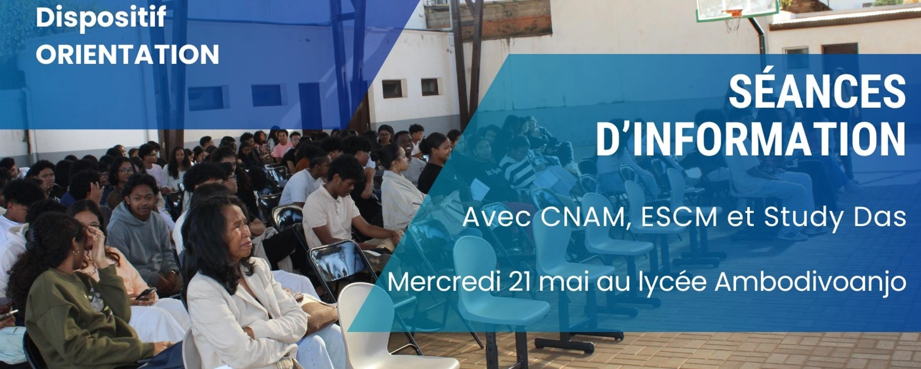 Dans le cadre de l’orientation des élèves, nous avons eu l’honneur d’accueillir dans notre établissement les représentants de trois écoles supérieures locales à savoir Le Conservatoire National des Arts et Métiers (CNAM), l’ESCM Business School qui offre des formations en marketing, communication et ingénierie d’affaires et STUDY DAS, une agence dédiée à accompagner les jeunes dans la réalisation de leurs projets académiques à l’étranger.