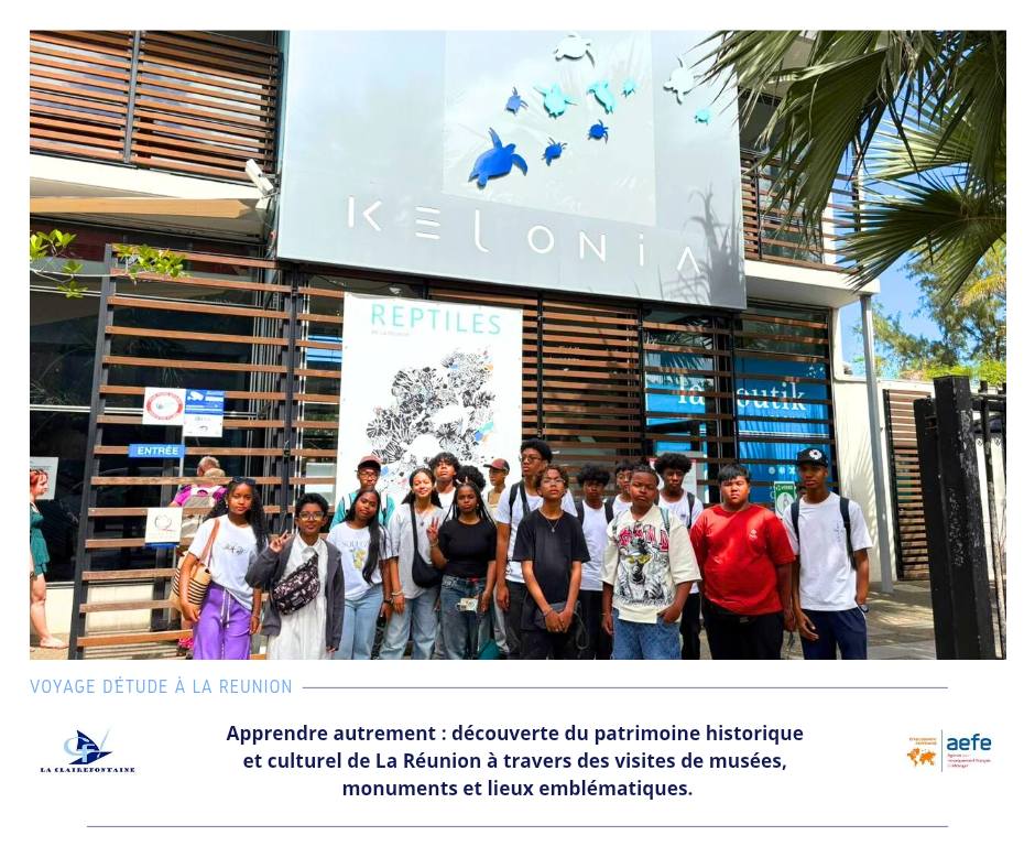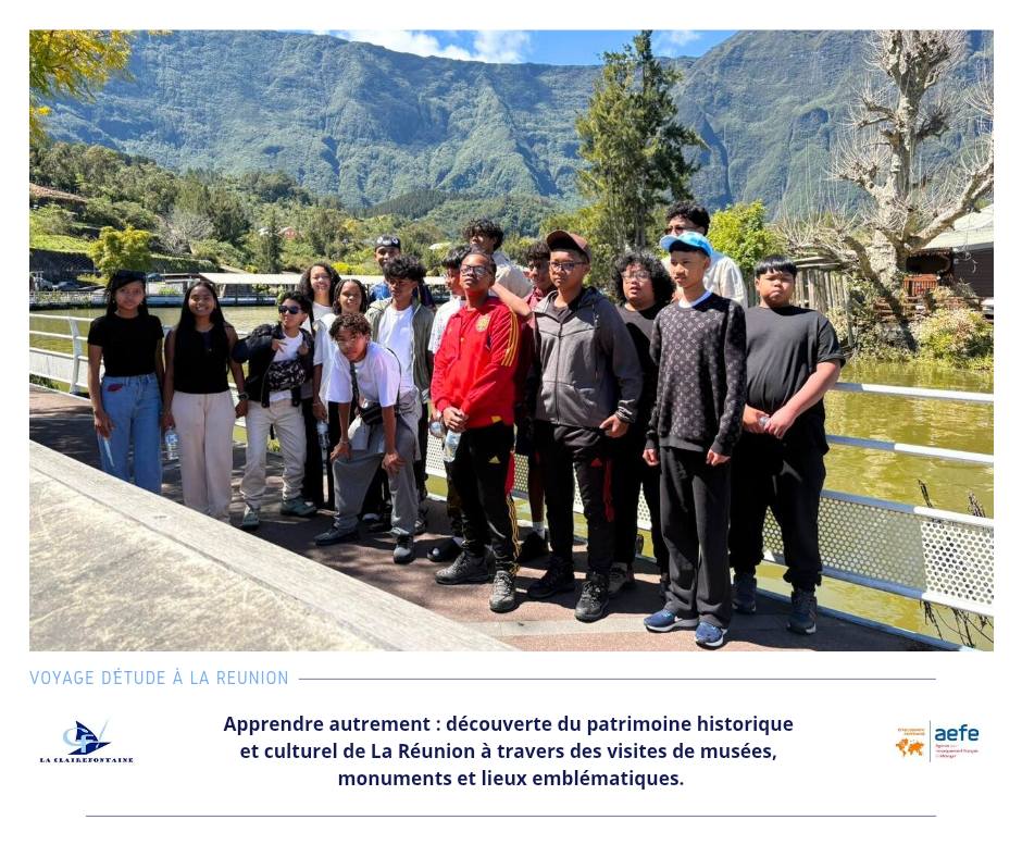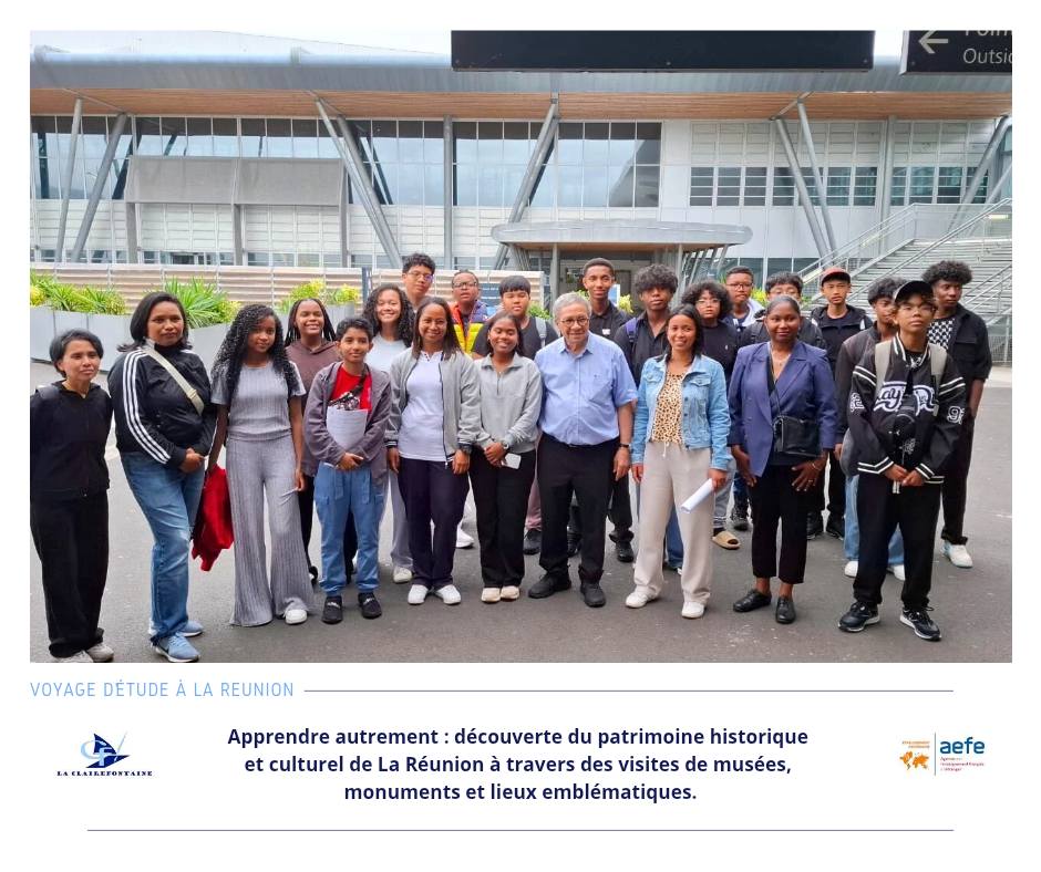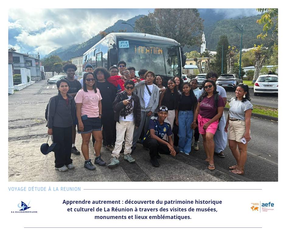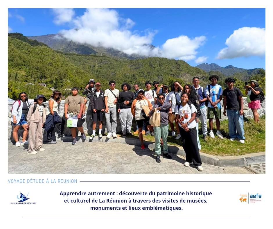 Après une année de préparation et de recherches, notre projet a enfin pris vie. Nos élèves de 4ème, 3ème, Seconde et Première ont effectué un voyage d’étude à La Réunion, accompagnés de notre équipe éducative.